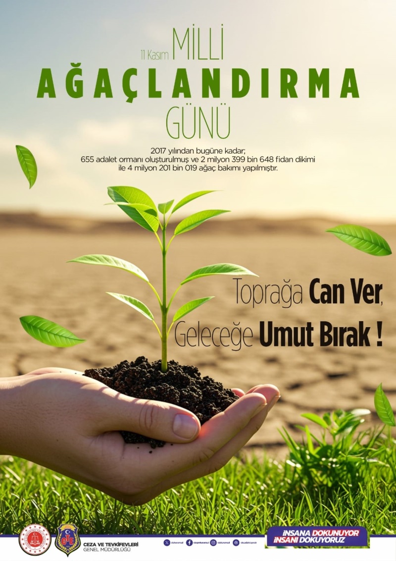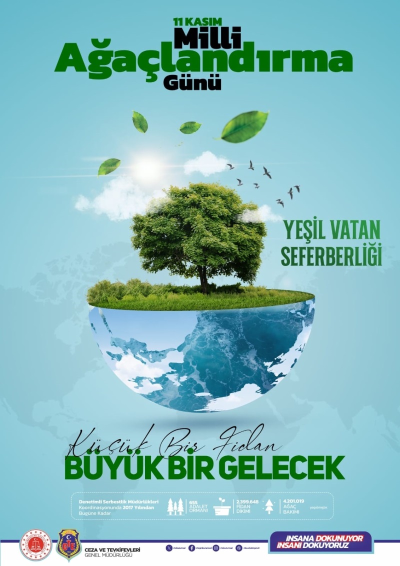 Ayrıca, 7 Kasım 2019 tarihinde yayımlanan Genelgeyle 11 Kasım günü “Milli Ağaçlandırma Günü” ilan edilmiştir. Bu kapsamda, denetimli serbestlik müdürlükleri ve açık ceza infaz kurumları tarafından ülke genelinde eş zamanlı ağaç dikim etkinlikleri düzenlenmektedir.